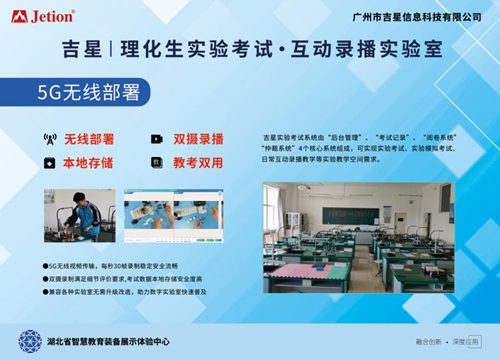同期,吉星攜手合作伙伴,在湖北省智慧教育裝備展示中心,為各地、市、州、教育局主管局長,電教館館長重點介紹吉星無線全錄播與理化生考試系統方案。