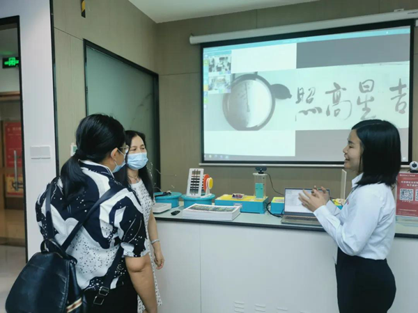 在現場,工作人員還向現場嘉賓展示了與550多公里以外的廣州連線的具體情況。雖然相隔甚遠,但主課堂和分課堂可以共享同樣的課程內容。