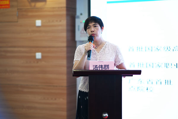 學校分享環節,廣州市工貿技師學院黨委書記湯偉群帶來了主題為以雙元抓手促進產教融合的分享。