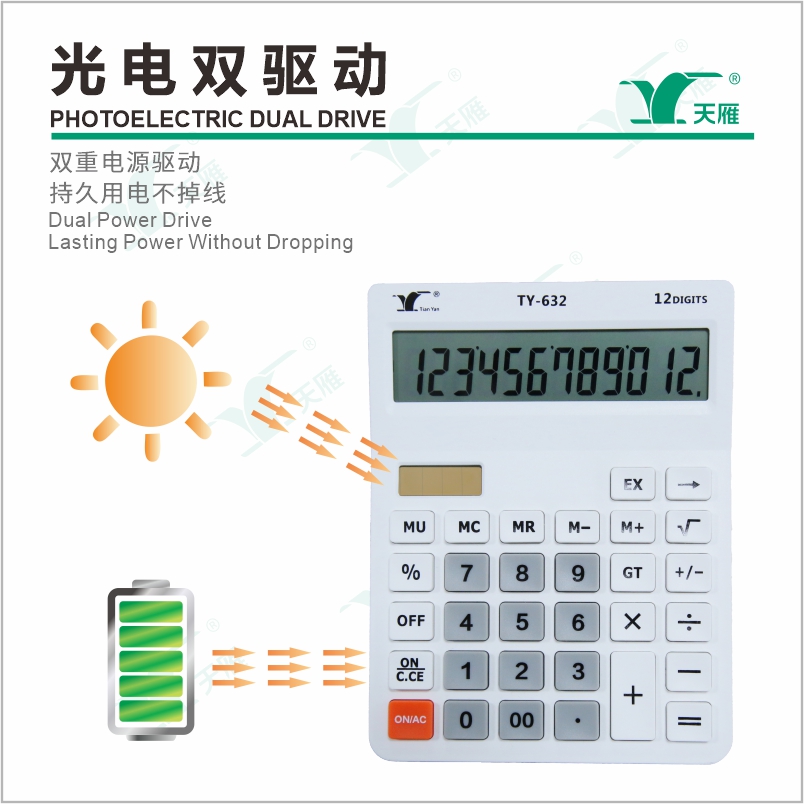 TY-632單行太陽(yáng)能臺(tái)式計(jì)算器