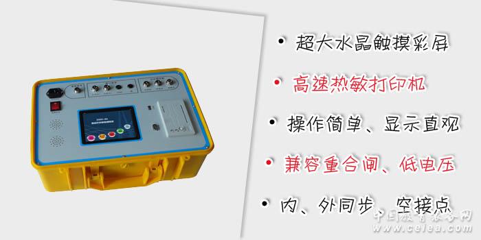 DL/T 846.3-2004 《高電壓測(cè)試設(shè)備通用技術(shù)條件 第3部分:高壓開關(guān)綜合測(cè)試儀》 ZGKC-6A 高壓開關(guān)動(dòng)特性測(cè)試儀 使用手冊(cè).pdf ZGKC-6A 高壓開關(guān)動(dòng)特性測(cè)試儀 技術(shù)規(guī)范書.pdf (注意:右鍵目標(biāo)另存為下載) 高壓開關(guān)機(jī)械特性測(cè)試儀、開關(guān)機(jī)械特性測(cè)試儀、高壓開關(guān)綜合測(cè)試儀、斷路器動(dòng)特性測(cè)試儀、斷路器機(jī)械特性測(cè)試儀、斷路器綜合測(cè)試儀、高壓開關(guān)時(shí)間特性測(cè)試儀、高壓開關(guān)特性測(cè)試儀、開關(guān)特性測(cè)試儀、斷路器測(cè)試儀、開關(guān)機(jī)械特性測(cè)試儀、開關(guān)參數(shù)測(cè)試儀 高壓斷路器是電力系統(tǒng)中最重要的控制設(shè)備之一。電網(wǎng)中高壓斷路器的運(yùn)行數(shù)量最多,運(yùn)行條件和技術(shù)要求比較復(fù)雜,其運(yùn)行可靠性不僅關(guān)系到高壓斷路器本身,而且影響到其它設(shè)備乃至整個(gè)電網(wǎng)。因此,對(duì)高壓斷路器的動(dòng)特性進(jìn)行測(cè)試是一項(xiàng)很重要的工作,但采用傳統(tǒng)的方法對(duì)高壓斷路器進(jìn)行動(dòng)特性測(cè)試時(shí)存在操作復(fù)雜、測(cè)試精度低等缺點(diǎn),為了解決這些問題,我們開發(fā)了ZGKC-6A高壓開關(guān)動(dòng)特性測(cè)試儀。 超大水晶觸摸彩屏、高速熱敏打印機(jī) 5.7寸640×480彩色觸摸屏,人性化交互式水晶界面,圖文顯示,界面直觀,便于現(xiàn)場(chǎng)人員操作和使用; 高速熱敏打印機(jī),方便現(xiàn)場(chǎng)打印試驗(yàn)數(shù)據(jù)和曲線; 集成超強(qiáng)性能直流電源 集成操作電源,無須現(xiàn)場(chǎng)二次電源,現(xiàn)場(chǎng)使用更加方便快捷; 電源電壓30V~300V可調(diào),電流20A,連續(xù)工作時(shí)間3s; 三種試驗(yàn)完美實(shí)現(xiàn) 常規(guī)試驗(yàn),測(cè)出開關(guān)的合分閘時(shí)間、彈跳時(shí)間、同期時(shí)間;測(cè)出開關(guān)的剛合分速度、最大速度、平均速度、開距、超程等速度數(shù)據(jù); 重合閘試驗(yàn),測(cè)出開關(guān)重合閘的分合、合分、分合分的時(shí)間數(shù)據(jù); 低電壓試驗(yàn),測(cè)出合分線圈的電壓動(dòng)作值,電源電壓可連續(xù)調(diào)節(jié); 三種合分閘控制方式 支持內(nèi)同步方式控制,內(nèi)部電源輸出直流電壓給合、分閘線圈; 支持外同步方式控制,外部電源提供電壓給合、分閘線圈; 支持空節(jié)點(diǎn)同步方式控制,開關(guān)自身電源提供電壓給合、分閘線圈,內(nèi)部提供兩路無源空接點(diǎn); 具有錄波功能 可對(duì)應(yīng)時(shí)間坐標(biāo)顯示斷口狀態(tài)—時(shí)間曲線、行程—時(shí)間(S-t)曲線、線圈電流—時(shí)間(I-t)曲線,有利于對(duì)開關(guān)機(jī)構(gòu)故障的準(zhǔn)確判斷。 大容量存儲(chǔ)器,支持U盤內(nèi)置或外置 帶4G容量的U盤,可海量存儲(chǔ)現(xiàn)場(chǎng)數(shù)據(jù),U盤可選內(nèi)置方式或外置方式;儀器具有1個(gè)標(biāo)準(zhǔn)USB接口,易導(dǎo)出試驗(yàn)數(shù)據(jù);U盤外置方式下用于插U盤,U盤內(nèi)置方式下,直接連接PC機(jī); 同測(cè)6路斷口1路速度1路電流 可測(cè)試6斷口數(shù)據(jù),內(nèi)部抗干擾電路可以抵御現(xiàn)場(chǎng)感應(yīng)的10kV高壓; 可測(cè)試1路速度,配備直線傳感器、角速度等傳感器,幾乎涵蓋所有型號(hào)開關(guān)的測(cè)試; 在內(nèi)同步方式時(shí),可測(cè)試1路通過合、分閘線圈的電流; 配備PC機(jī)上層軟件 PC機(jī)上層軟件可以打開試驗(yàn)數(shù)據(jù),即可以管理分析試驗(yàn)數(shù)據(jù),也可以生成試驗(yàn)報(bào)告、導(dǎo)出EXCEL數(shù)據(jù)等功能; 內(nèi)置抗干擾電路 內(nèi)部抗干擾電路可以滿足500kV變電站內(nèi)可靠使用,保護(hù)電路能保證儀器及人員安全、儀器并能穩(wěn)定、準(zhǔn)確測(cè)試; 防塵防水工程塑料密封箱 采用防塵、防水、防腐工程塑料密封箱,體積小,重量輕,便于攜帶。高壓開關(guān)動(dòng)特性測(cè)試儀
