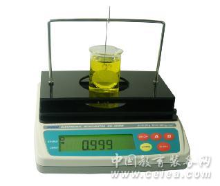 主要功能與特點(diǎn): 任何溶液皆可快速測(cè)量 助焊劑、膠狀體、油性體、原油類等相似狀態(tài)產(chǎn)品皆可測(cè)量 數(shù)字顯示、測(cè)量精度高、操作簡(jiǎn)便、穩(wěn)定耐用 可測(cè)量常溫至100℃溫度狀態(tài)下的樣品密度值 取樣方便,所測(cè)樣品只需50CC 沒(méi)有韋氏天平法、比重瓶法煩瑣的調(diào)試與操作 可配合恒溫水槽作業(yè)、測(cè)量所需溫度的液體比重 測(cè)量杯容易清洗,不受比重瓶口徑小的限制,可重復(fù)使用。同時(shí)也可使用一次性測(cè)量杯 揮發(fā)性液體、腐蝕性液體、粘稠性液體、強(qiáng)酸強(qiáng)堿性液體皆可快速測(cè)量(選購(gòu)相關(guān)配件) 含RS-232C通信接口,方便連接PC與打印機(jī),可選購(gòu)DE-40打印機(jī)打印測(cè)量數(shù)據(jù) 配置專用防風(fēng)防塵罩,組合方便、堅(jiān)固耐用 測(cè)量步驟: ①將盛有樣品的測(cè)量杯放于測(cè)量放置板上,扣除掛鉤的重量。 ②用掛鉤將標(biāo)準(zhǔn)砝碼懸掛并完全浸沒(méi)在待測(cè)液體中,顯示密度值。