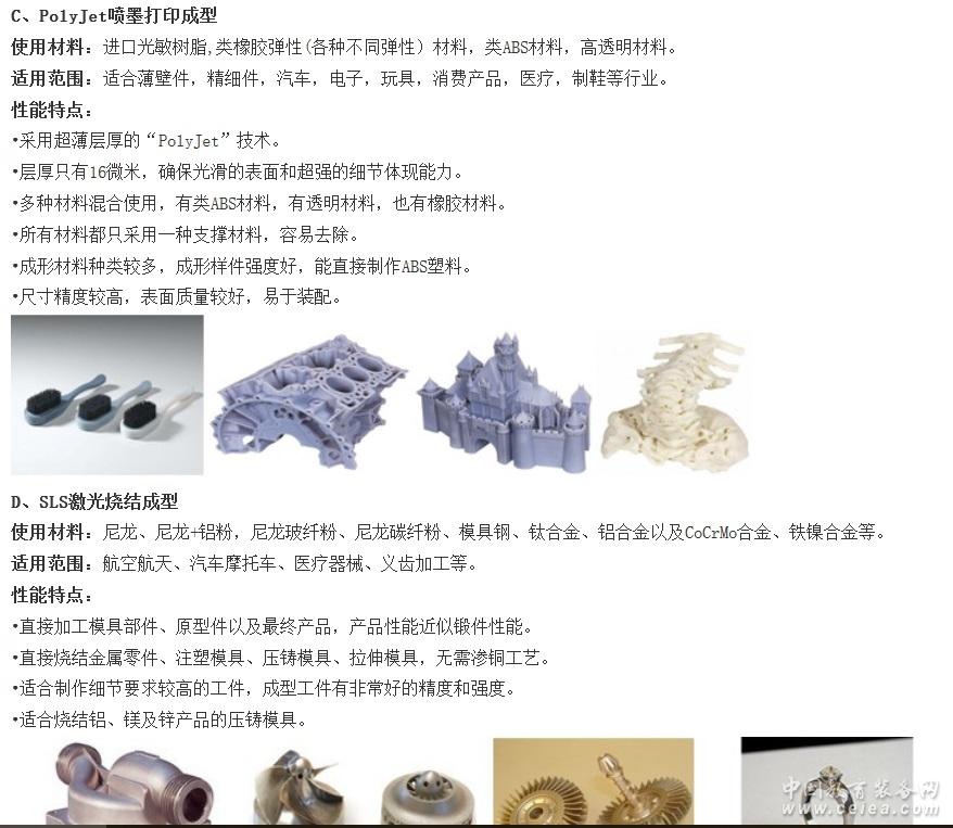 產(chǎn)品詳細(xì)介紹1、3D打印服務(wù) 3D打印技術(shù)已經(jīng)成為每個工業(yè)領(lǐng)域快速產(chǎn)品研發(fā)的有力工具,許多新的3D打印技術(shù)在不斷地提高精度、制造速度、模型性能以及經(jīng)濟(jì)效益,而且為迅速構(gòu)建模型提供各種方法。包括: A、SLA激光固化成型 使用材料:進(jìn)口和國產(chǎn)高品質(zhì)光敏樹脂。 適用范圍:汽車,電子,玩具,消費(fèi)產(chǎn)品,醫(yī)療,制鞋等行業(yè)。 性能特點(diǎn): •高耐久性 •部件:類PP型 •良好的邊緣特性 •最好的斷裂伸長率 •極小氣味,無毒 B、FDM熔融堆積成型 使用材料:ABS,PC,PC-ABS ,PPSF。其中ABS材料制作的產(chǎn)品機(jī)械性能高;PPSF可耐高達(dá)230℃以上的高溫,PPSF材料在各種快速成型材料中,具有最高的強(qiáng)度、韌性、耐熱性及抗化學(xué)性。 所有材料均是生產(chǎn)級材料,可以直接測試或重復(fù)使用,并可以進(jìn)行二次加工等。 適用范圍:可以直接制作結(jié)構(gòu)復(fù)雜的裝配原型件,適合航空航天、汽車摩托車、小家電、電動工具,醫(yī)療器械、醫(yī)療電子、玩具產(chǎn)品、數(shù)碼雕塑及汽車零部件的設(shè)計(jì)開發(fā)和性能驗(yàn)證等。 性能特點(diǎn): •選用標(biāo)準(zhǔn)工程熱塑性塑料,如ABS,PC等可以用來生產(chǎn)結(jié)構(gòu)功能原型。 •在制造果汁機(jī)、電動工具、汽車零件等方面,適用于高強(qiáng)度沖擊的產(chǎn)品功能測試。 •在醫(yī)療器材方面, 可進(jìn)行γ輻射或氧化乙烯(EtO)消毒。 •在航天零部件業(yè)具有防火性。 •小家電設(shè)計(jì)業(yè)與汽車設(shè)計(jì)業(yè)具有抗化學(xué)性以及200℃以上還能持續(xù)運(yùn)作。 •在食物調(diào)理與醫(yī)療產(chǎn)品方面可以進(jìn)行消毒。 •使用PPSF材料總是呈現(xiàn)著耀眼的金黃色,令人愛不釋手。 •模型并不會產(chǎn)生翹曲,收縮,或是吸收濕氣。 C、PolyJet噴墨打印成型 使用材料:進(jìn)口光敏樹脂,類橡膠彈性(各種不同彈性)材料,類ABS材料,高透明材料。 適用范圍:適合薄壁件,精細(xì)件,汽車,電子,玩具,消費(fèi)產(chǎn)品,醫(yī)療,制鞋等行業(yè)。 性能特點(diǎn): •采用超薄層厚的“PolyJet”技術(shù)。 •層厚只有16微米,確保光滑的表面和超強(qiáng)的細(xì)節(jié)體現(xiàn)能力。 •多種材料混合使用,有類ABS材料,有透明材料,也有橡膠材料。 •所有材料都只采用一種支撐材料,容易去除。 •成形材料種類較多,成形樣件強(qiáng)度好,能直接制作ABS塑料。 •尺寸精度較高,表面質(zhì)量較好,易于裝配。 D、SLS激光燒結(jié)成型 使用材料:尼龍、尼龍+鋁粉,尼龍玻纖粉、尼龍?zhí)祭w粉、模具鋼、鈦合金、鋁合金以及CoCrMo合金、鐵鎳合金等。 適用范圍:航空航天、汽車摩托車、醫(yī)療器械、義齒加工等。 性能特點(diǎn): •直接加工模具部件、原型件以及最終產(chǎn)品,產(chǎn)品性能近似鍛件性能。 •直接燒結(jié)金屬零件、注塑模具、壓鑄模具、拉伸模具,無需滲銅工藝。 •適合制作細(xì)節(jié)要求較高的工件,成型工件有非常好的精度和強(qiáng)度。 •適合燒結(jié)鋁、鎂及鋅產(chǎn)品的壓鑄模具。