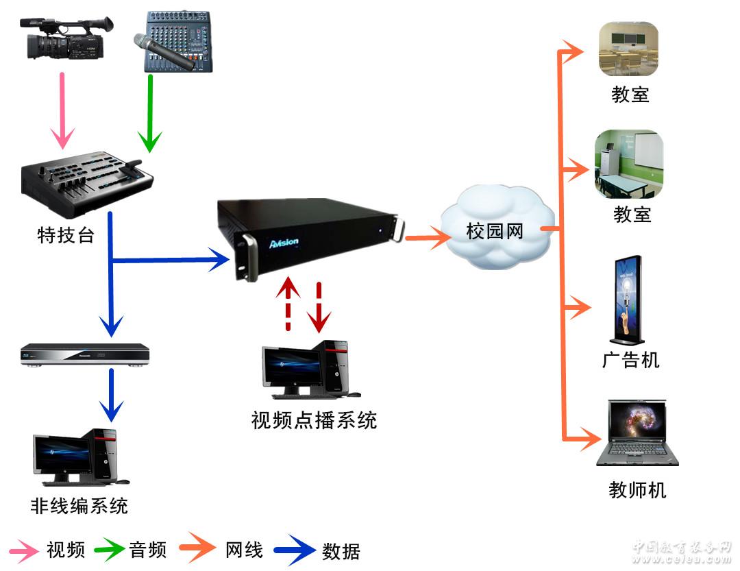 在原來(lái)校園電視臺(tái)的基礎(chǔ)上,只需要簡(jiǎn)單幾套設(shè)備就實(shí)現(xiàn)高成本的校園電視臺(tái)項(xiàng)目,完全鎖定客戶項(xiàng)目。最主要價(jià)格成本最低,畫質(zhì)效果卻能相媲美的一套校園電視臺(tái)設(shè)備。 AVision 高清式網(wǎng)絡(luò)直播機(jī)是一款借助校園網(wǎng)、城域網(wǎng)平臺(tái),將實(shí)時(shí)視頻直播到各個(gè)信息點(diǎn),做到實(shí)時(shí)、高清畫面,唇音同步效果,收看端錄制,真正做到50毫秒延遲效果,低成本高性能的直播產(chǎn)品好幫手。 網(wǎng)絡(luò)直播機(jī)將網(wǎng)絡(luò)高清晰度視頻采集、編碼、直播于一體的高性能、高集成的設(shè)備,實(shí)現(xiàn)高清視頻信號(hào)的采集和編碼,并通過網(wǎng)絡(luò)將高品質(zhì)視音頻信號(hào)實(shí)時(shí)直播在校園網(wǎng)絡(luò)或?qū)拵Щヂ?lián)網(wǎng)中多臺(tái)機(jī)同時(shí)播放同一設(shè)備高清畫面的應(yīng)用場(chǎng)合。采用高性能的最新視頻壓縮芯片和具有按網(wǎng)絡(luò)狀況自動(dòng)適應(yīng)的功能,圖像聲音清晰流暢,經(jīng)過網(wǎng)絡(luò)傳輸傳送距離不受限制。 |