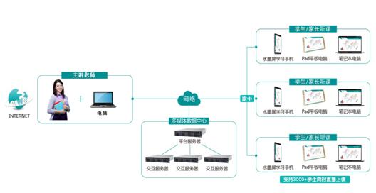 而更為便捷的是,教師在家中通過電腦即可隨時開課,學生通過手機APP或web端即時接入課堂,實現了直播教學常態化。通過海信空中課堂解決方案,老師可通過音視頻,共享桌面、共享文檔、共享高拍儀、協作白板等應用進行課堂教學,直播課堂或教學資料還可通過二維碼隨時分享,而學生可隨時通過文字彈幕提問與老師進行文字互動,充分調動了學生在線學習積極性。