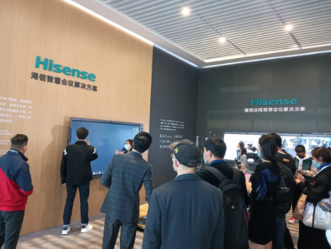 另外,AWE現場展示的海信智慧會議解決方案,它以全場景智慧平板為基礎,音視頻云會議系統為中心,形成適應于大中小型會議室、商務洽談室、多媒體報告廳、高管辦公室等多場景。在現場,通過展示雙屏視頻會議,一屏顯示參會人,一屏進行文稿寫作,與會人員均獲得了高效的會議臨場感。