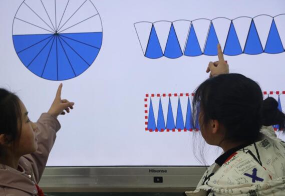 李老師還強調:“海信交互式一體機可以在原有的課件上進行涂抹和修改,也可以對書寫文本進行拖曳、放大、旋轉和遮罩等,當原有“黑板”寫滿后,只需要重新創建一個即可,相較于傳統的黑板,極為便捷,同時能夠實時記錄課堂教學過程,即刻調用所需數據資料,極大的滿足了我們教師對互動教學的迫切需求。例如,我在教授《三角形內角和》一課時,通過海信交互式一體機的畫圖工具輕松繪制出三角形,運用照相功能對三角形的三個內角分別照相獲取和三角形三個內角度數相同的三個角,再旋轉和移動這三個角,使其同頂點重合,這樣不僅操作方便,同時能夠避免傳統折紙法出現的教學誤差�!�