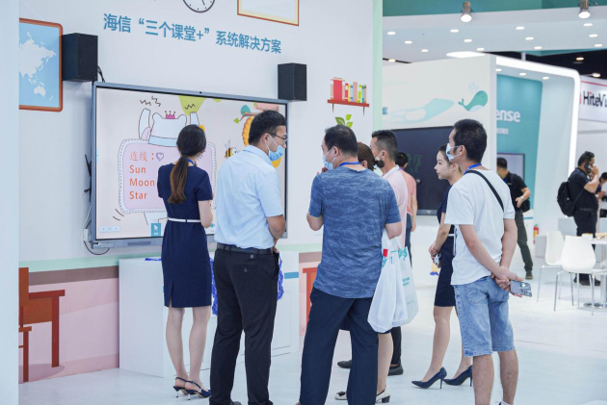 作為本屆展會的獨家冠名單位,海信商用顯示公司擁有最大的展區(qū),展區(qū)面積超300平,參展產品有海信交互式觸控一體機、智慧黑板等,產品涵蓋普教、高職教、教培等多個領域,產品形態(tài)從簡單的交互智能平板擴展到教學場景及系統(tǒng)解決方案、教學輔助設備等。解決方案如“三個課堂+”系統(tǒng)解決方案、校長辦公室建設方案、智能語音轉寫解決方案、海信智慧課堂系統(tǒng)解決方案、高校智慧雙屏系統(tǒng)解決方案、教培云課堂系統(tǒng)解決方案、校園信發(fā)集控系統(tǒng)解決方案、智慧黨建活動室解決方案等悉數(shù)亮相。
