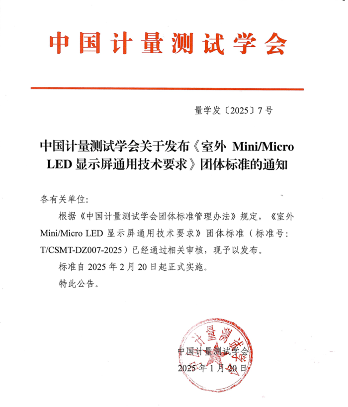近日,中國計量測試學會正式發布《室外Mini/Micro LED顯示屏通用技術要求》標準。海信憑借在LED行業深厚的技術積累和影響力,主持此次標準制定,再次彰顯了海信在LED顯示領域的專業實力和行業地位。
