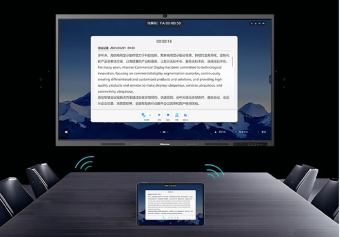 作為業內首個接入DeepSeek智能體的會議平板,海信商用顯示深度融合海信自研的星海大模型技術,打造全場景AI協作閉環。當傳統語音轉寫還在糾結標點符號位置時,海信商用顯示的DeepSeek智能體已能理解會議場景中的深層語義,支持會中實時語音記錄、轉錄、翻譯和實時字幕,準確率超98%。同時還自動生成含關鍵詞、會議結論、會議摘要、待辦總結和發言人總結的結構化會議紀要,支持多輪問答追溯討論細節,實時顯示深度思考過程,紀要整理時間縮短80%。