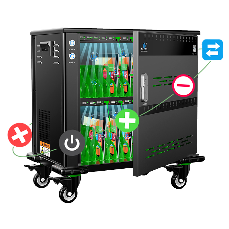 產(chǎn)品詳細(xì)介紹品牌:際慶科技 型號: SYNC32 Sync 32 招投(應(yīng)標(biāo))參數(shù): 功能參數(shù): 1、32口直流充電USB 5V2.4A且每口穩(wěn)定兼容HUB數(shù)據(jù)傳輸功能并對應(yīng)配32條綠色數(shù)據(jù)線(充電IC芯片智能識別平板、手機等設(shè)備所需要的電流,安全、穩(wěn)定、高效); 2、★每口獨立充電并具備智能LED轉(zhuǎn)燈功能(紅燈:充電狀態(tài) 中,綠燈:充滿/未連接),且有對應(yīng)的數(shù)字序號; 3、★金屬按鈕開關(guān),可過15A以上大電流,兼具電源開關(guān)和通電指示功能,單120mm風(fēng)扇,搭配智能溫控系統(tǒng),30℃±8自動啟停; 4、★主動式PEC節(jié)能開關(guān)電源,柜內(nèi)置十重安全保護(hù)①雷擊保護(hù)②浪涌保護(hù)③過載保護(hù)④漏電保護(hù)⑤隔離保護(hù)⑥過流保護(hù)⑦過壓保護(hù)⑧短路保護(hù)⑨過充保護(hù)⑩灌流保護(hù); 5、★自動消毒功能,紫外線+臭氧O₃雙重消毒,搭配金屬按鈕開關(guān),啟動25min后自動關(guān)閉(選配項); 6、★定時充電具有電子顯示屏/多組設(shè)置/精準(zhǔn)定時/倒計時設(shè)置(根據(jù)使用習(xí)慣隨意設(shè)定啟停時間段)(選配項); 7、★支持?jǐn)?shù)據(jù)同步功能,能批量一鍵安裝和卸載APP,支持文件分發(fā)、文件刪除、一鍵關(guān)機等智能化管控,監(jiān)測設(shè)備實時充電狀態(tài)和電量等(選配項)。 結(jié)構(gòu)參數(shù): 1、★外形尺寸≤582*599*358mm(含腳輪、防撞角),工位容積為320*200*25mm ,頂邊圓弧(≥R8)設(shè)計; 2、★兩側(cè)設(shè)有ABS工程提手,柜體四個底角加裝凸高15mm軟塑防撞角,配裝 4個3寸帶剎車天然橡膠靜音腳輪(高度105mm); 3、★二層式全黑16(每層)工位設(shè)計,配裝ABS綠色隔斷,單開前門鎖,左側(cè)艙為電源管控封閉區(qū); 4、★門板透明視窗部分與內(nèi)部充電LED燈一一對應(yīng),且有相應(yīng)的數(shù)字序號,前門板與側(cè)板設(shè)有對流孔,通風(fēng)散熱。 產(chǎn)品資質(zhì): ①★整機CCC認(rèn)證(原廠蓋章證明) ②★具有商標(biāo)(國際分類20和9)證書(原廠蓋章證明) ③★具有軟件著作權(quán)(原廠蓋章證明) ④★具有ISO9001:2015質(zhì)量管理體系認(rèn)證(原廠蓋章證明) ⑤★具有產(chǎn)品專利證書(原廠蓋章證明) ⑥★具有AAA企業(yè)信用等級證書(原廠蓋章證明)