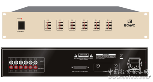 產(chǎn)品詳細(xì)介紹產(chǎn)品特點(diǎn): ■★兼容IEC60914、GBT15381-94; ■★紅外線傳輸副載波符合IEC61603-7數(shù)字紅外國際標(biāo)準(zhǔn); ■★采用DQPSK數(shù)字調(diào)制/解調(diào)技術(shù); ■★具有6組LED電平信號指示; ■具有自動電平控制功能(ALC); ■★具有1+5通道同聲傳譯,支持1+5種語言調(diào)制發(fā)射: ■紅外線傳輸技術(shù),避免竊聽和無線電干擾,無電磁輻射; ■ 紅外線音頻處理技術(shù),實(shí)現(xiàn)20Hz~20KHz超寬頻響; ■不受高頻驅(qū)動光源干擾,并有超強(qiáng)抗手機(jī)干擾能力; ■ 采用32 bit高速DSP處理,呈現(xiàn)完美音質(zhì); ■具有1路25針翻譯臺輸出口,可連接多臺翻譯臺; ■★具有2路紅外輻射板輸出BNC口,可連接多臺紅外輻射板; ■在同一建筑物內(nèi)相鄰的會議室可安裝多套,且不會相互干擾; ■★具有6組音頻輸出,供會議音頻錄制使用; ■不受會場座位限制,在信號發(fā)射范圍內(nèi)會議代表可任意走動; 電 源: AC110~220V/50Hz/60Hz 靜態(tài)功率: 35W 晶振: 晶體控制 載波頻率: 1.7MHz~4MHz 偏差: ±6KHz(峰值±7KHz) 總諧波失真: <0.05% 通道隔離度: >80dB 動態(tài)范圍: >80dB 計(jì)權(quán)信噪比: >80dBA 信噪比(S/N): 80dB 頻率響應(yīng): 20-20KHz 輸入靈敏度: 500Mv-1.5V(線路電平) 射頻輸出阻抗: 50Ω 音頻輸入接口: RCA*6個 重量: 約6.5KG 機(jī)身尺寸: 483L×262W×90H(mm) 包裝尺寸: 560*410*170mm |