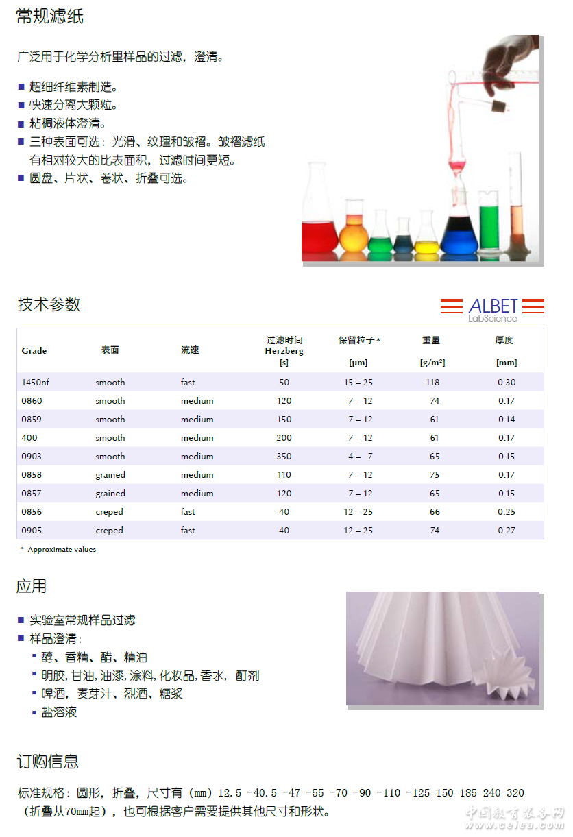ALBET LabScience是我們的一個產品商標,產品系列里包括濾紙,濾膜,濾紙筒和注射器過濾器等多種產品,專門提供日常實驗室應用,產品多種規格大小以供選擇。