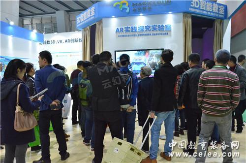 云幻科教3D創(chuàng)新實(shí)驗(yàn)室教學(xué)系統(tǒng)入選中國教育裝備行業(yè)協(xié)會2018年度推薦產(chǎn)品,同時(shí)也是其中唯一一個(gè)3D技術(shù)融合教學(xué)的產(chǎn)品,這既是對云幻科教產(chǎn)品的認(rèn)可,也是對云幻科教3D教育產(chǎn)品研發(fā)工作的認(rèn)可。云幻科教秉承學(xué)思結(jié)合,知行統(tǒng)一的教育理念,不斷的進(jìn)行3D教學(xué)資源研發(fā),2017年12月,在73屆中國教育裝備展上,云幻科教推出AR實(shí)踐探究實(shí)驗(yàn)室解決方案,綜合應(yīng)用AI和AR技術(shù),搭配AR探究實(shí)驗(yàn)資源庫,按照國家課程標(biāo)準(zhǔn)實(shí)驗(yàn)要求,將中學(xué)難懂的抽象的復(fù)雜的實(shí)驗(yàn)運(yùn)用3D建模及AR技術(shù)營造虛實(shí)合一的實(shí)驗(yàn)場景。老師無需佩戴任何體感設(shè)備即可進(jìn)行手勢操作,通過手勢可以實(shí)現(xiàn)抓取、移動、添加、減少、旋轉(zhuǎn)、拆除、組合等動作,從而進(jìn)行探究實(shí)驗(yàn)操作。AR實(shí)踐探究實(shí)驗(yàn)室一經(jīng)展出,參觀的人員絡(luò)繹不絕,非常認(rèn)可云幻科教AR產(chǎn)品。