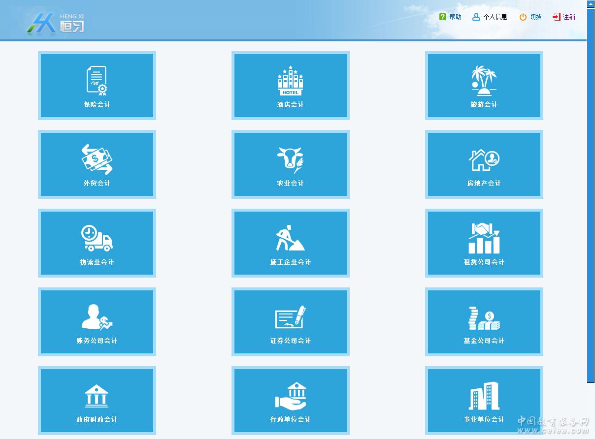 產品詳細介紹包含行業有:施工企業會計、保險會計、租賃公司會計、財務公司會計、證券公司會計、基金公司會計、政府財政會計、財政預算會計、行政單位會計、事業單位會計、外貿企業會計、農業會計、旅游業會計、酒店會計、房地產會計、物流業會計、商品流通企業會計、交通運輸業會計的內容;教師還可以向系統中添加和修改不同的企業案例,并自由安排在不同的難度下進行實習練習。