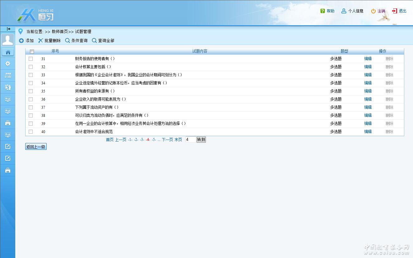 (2)試題錄入和試題批量導入。