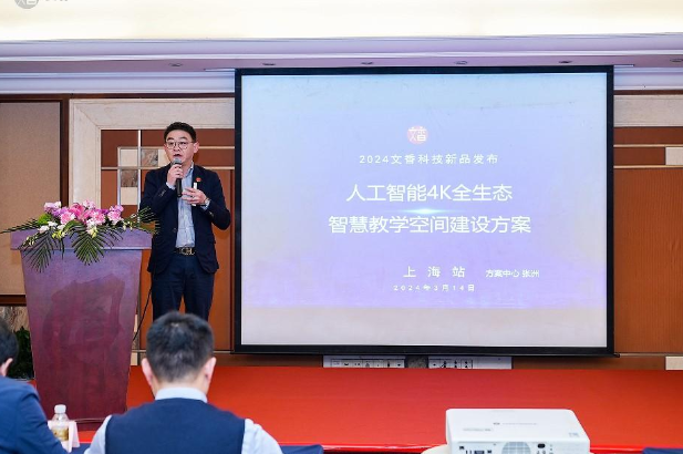 大會期間,文香教育研究院執(zhí)行院長兼方案中心總經(jīng)理張洲以其深厚的行業(yè)洞察和豐富的實踐經(jīng)驗,針對人工智能4K全生態(tài)智慧教學(xué)空間建設(shè)方案為到場用戶進(jìn)行方案講解,培訓(xùn)部經(jīng)理王璐對本次新產(chǎn)品進(jìn)行了全面介紹,讓到場用戶能夠更清晰的了解本次推廣的產(chǎn)品及方案。