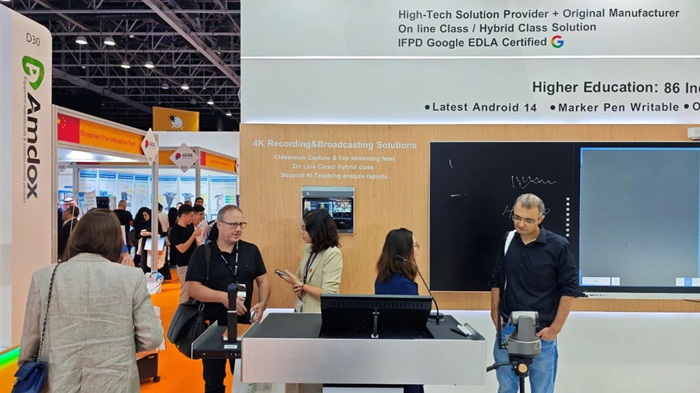 在展會(huì)上,wentech還展示了新推出的AI錄播系列解決方案,這些解決方案包括4K移動(dòng)錄播解決方案、4K常態(tài)化錄播解決方案,以及4K移動(dòng)實(shí)訓(xùn)錄播解決方案等。來(lái)自迪拜ICT行業(yè)大型公司的Nova Mohammed Wajid說(shuō):“這些設(shè)備將為中東的學(xué)校帶來(lái)新的體驗(yàn),也將為我們帶來(lái)新的商機(jī),未來(lái)將在各方面進(jìn)行深度合作”。該系列解決方案為中東教育機(jī)構(gòu)和個(gè)人用戶提供更多樣化的錄播解決方案,滿足不同場(chǎng)景下的教學(xué)需求,不僅適用于各類學(xué)校的教學(xué)需求,還可用于企業(yè)培訓(xùn)、遠(yuǎn)程教育等多個(gè)領(lǐng)域。