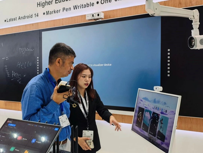 在展會(huì)上,WenTech發(fā)布了2024年為中東地區(qū)打造的全新產(chǎn)品以及解決方案,包括豐富的交互智能顯示、AI錄播等產(chǎn)品方案,吸引了大量參觀者的目光。這些不僅展示了WenTech的強(qiáng)大技術(shù)實(shí)力,更體現(xiàn)了其對(duì)教育、商務(wù)等應(yīng)用場(chǎng)景的深刻理解。WenTech的產(chǎn)品旨在為用戶提供更為直觀、高效的溝通方式。無(wú)論是在會(huì)議、教學(xué)還是遠(yuǎn)程協(xié)作中,WenTech的產(chǎn)品都能幫助用戶實(shí)現(xiàn)高效、便捷的溝通與交流。