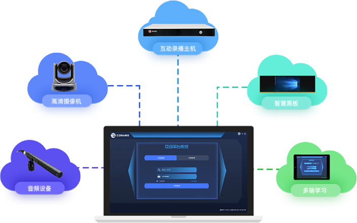 本方案由智慧黑板、互動錄播主機(jī)、高清攝像機(jī)、專業(yè)音頻設(shè)備、視頻互動應(yīng)用云平臺等產(chǎn)品組成。