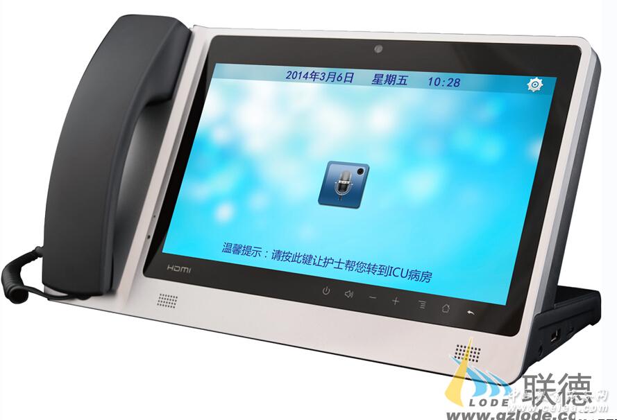 座式,放置在家屬探視區(qū)桌面,供重病房的病人家屬探視對(duì)講時(shí)使用。 采用10.2寸數(shù)字真彩屏,linux操作系統(tǒng),觸摸式操作,界面高檔美觀。 須配合護(hù)士站主機(jī)和ICU分機(jī)使用。 ·基于局域網(wǎng),以TCP/IP協(xié)議傳輸視頻、音頻和控制信號(hào),系統(tǒng)內(nèi)最大可 支持30路探訪可視對(duì)講。 高清可視對(duì)講,可手柄或免提通話,內(nèi)置高靈敏度麥 克風(fēng)、高保真立體聲喇叭,并具有16K以上的聲音采樣率,使聲音更加逼真、宏亮。 一鍵式呼叫。當(dāng)病人家屬探視時(shí),可使用該分機(jī)一鍵呼叫主機(jī)及雙向可視對(duì)講。 可外接耳麥。 采用低照度CMOS彩色攝像頭。 有錄音錄像功能。 可記錄呼叫日志、呼叫開(kāi)始時(shí)間、 呼叫等待時(shí)間、通話開(kāi)始時(shí)間、通話時(shí)間,并能對(duì)已錄下的錄音錄像文件進(jìn)行查詢(xún)播放,也可將錄音錄像文件導(dǎo)出至電腦進(jìn)行播放;當(dāng)分機(jī)空閑時(shí),可自動(dòng)將錄音錄像文件上傳到指定的存儲(chǔ)服務(wù)器上·可配合一起使用,實(shí)現(xiàn)家屬探視區(qū)大屏同步查看病人通話視頻畫(huà)面。 安裝簡(jiǎn)捷,用RJ45標(biāo)準(zhǔn)網(wǎng)線,插入網(wǎng)絡(luò)交換機(jī)任一端口即可工作。