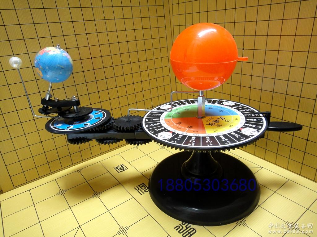 產品詳細介紹演示內容 1、地球的自轉和公轉: 當地球不停地由西向東繞著自己的軸旋轉時,同時以一邊圍繞著太陽轉動。前者為自轉,后者為公轉。自轉一周一晝夜;公轉一周為一年(365—1/4天,地軸傾斜的角度和方向始終不變。) 2、月球的公轉 在演示地球的自轉、公轉的同時,就可以觀察月球依反時針方向繞地球運轉,它也隨地球繞太陽公轉(公轉一周為一朔望月)。 3、同一地方的晝夜晨昏: 當光標從黑暗轉向光明即“早晨”,正對太陽為“正午”,離開太陽轉入黑暗是“黃昏”,此段時間就是“白天”;光標進入黑暗便是夜晚。 5、由于地球始終傾斜著身子公轉和自轉,北半球冬季晝短夜長、夏季晝長夜短。而南半球卻與此相反。 6、四季和寒暑變化: 對于北半球,夏至時陽光直射在北回歸線上,而且見光部分多,背光部分少,故晝長夜短,氣候炎熱;冬至時陽光斜射北回歸線,而且見光部分少,背光部分多,故晝短夜長,氣候寒冷。南半球則相反。在春分秋分時日光直射在赤道上,南北半球光照相似,介于冬夏之間,故晝夜平分,且氣候溫和。 7、月亮圓缺變化: 月亮本身不會發光,我們能看到的月亮是被太陽照著的一面,它和地球一樣,無論何時(月蝕時除外)總有一半被太陽照亮,因為它不斷地繞著地球運行,照亮部分有時全對著我們,有時全背著我們,因此就產生盈虧圓缺的變化,天文學上叫“月相交替”。做此實驗,先接通電源,讓月球轉到太陽和地球中間位置,月球背光一面朝著地球,這時月相叫做“朔”(相當于農歷初一)。繼續讓月球轉到“朔”“上弦”中間位置,陽光漸漸地照亮它向著地球的半球邊緣部分,能看到上弦,望下弦,則相繼能看到上弦的半月面的西邊,農歷月半是整圓月,農歷二十二、三日晨能見到的半月在東邊等月相交替。 8、日食和月食: 當地球運行至日、地之間并在一條直線上,便會產生“日食”其發生時間基本上在農歷月初(即朔時);若地球運行至日、月之間并在一條直線上時,便會產生“月食”,時間一定在農歷中(即望時)。 9、二十四節氣: 地球繞太陽公轉,從春分點起每移動15°便是一節氣,移動一周360°就分為二十四個節氣。這是我國勞動人民掌握大自然的規律,進行農耕生產的偉大創舉。 10、從地球模型上可以看出下列內容: A、國際日期變化線; B、赤道、南北回歸線、南北極圈的位置; C、五帶的位置 D、七大洲、四大洋的位置 維護保養和注意事項 1、將儀器取出包裝箱時,請用雙手托住底座軸的兩頭,以免把手受力太大而破損。 2、使用時,將儀器從包裝箱內取出,擦拭清潔后,看各運轉部分是否有潤滑油。若已干,應加少許。 3、在演示時,應走動緩慢,切忌用沖擊力和高速度轉動。否則會影響儀器壽命,甚至很快損壞。 4、在演示時,推柄應逆時針旋轉才是正確的。否則會損壞傳動結構。 5、在演示日食、月食時,首先檢查太陽球內電池是否有電;為節省時間,可先把日、地、月三者轉到一直線上,然后抬起月軌轉至月球與日、地中心高度相等,日食或月食即可出現。演示完畢,應檢查指針對夏至時,地軸是否指向太陽。若未正對,則需擰松四季盤下的螺釘,調準后,再擰緊。 6、儀器使用后,仍裝回箱內,切勿倒置,并存放在干燥處。 |