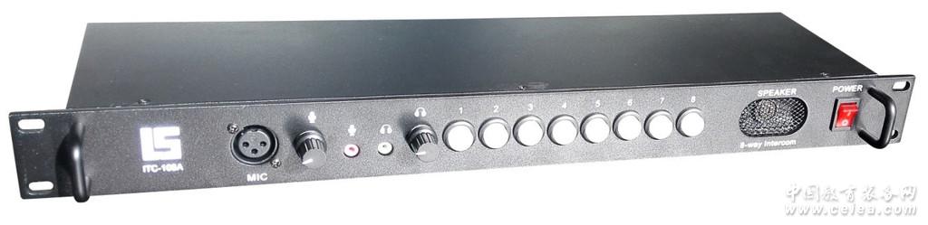 在影視制作現場,導播人員和攝像、燈光、主持、嘉賓等溝通的常用器材有Intercom和Tally燈兩種方式。ITC-108A內部通話系統,擁有8個獨立的通道,支持一對一通話,一對多通話,多對多通話。ITC-108A采用有線連接,性能穩定可靠,配置靈活,全雙工通信,聲音洪亮清晰,使用簡單、方便,抗干擾能力強,適用于電視臺、影視制作中心、電視轉播車、通信指揮中心、演出現場及工程試驗場等需要通信的場合。ITC-108A采用標準19英寸、1U高度的機柜式設計,可安裝在系統機柜或任何場所使用。按鍵內置燈光顯示,機器內置2W喇叭。