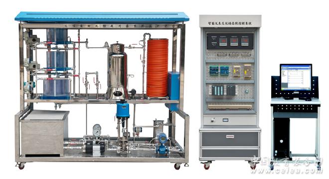 不銹鋼儲水箱;上、中、下三個串接有機玻璃圓筒型水箱;三相4.5kW電加熱鍋爐(由不銹鋼鍋爐內膽加溫筒和封閉式外循環不銹鋼冷卻鍋爐夾套構成)和鋁塑盤管組成。系統動力系統有兩套:一套由三相(380V交流)不銹鋼磁力驅動泵、電動調節閥、交流電磁閥、渦輪流量計等組成;另一套由日本三菱變頻器、三相不銹鋼磁力驅動泵(220V變頻)、渦輪流量計等組成。