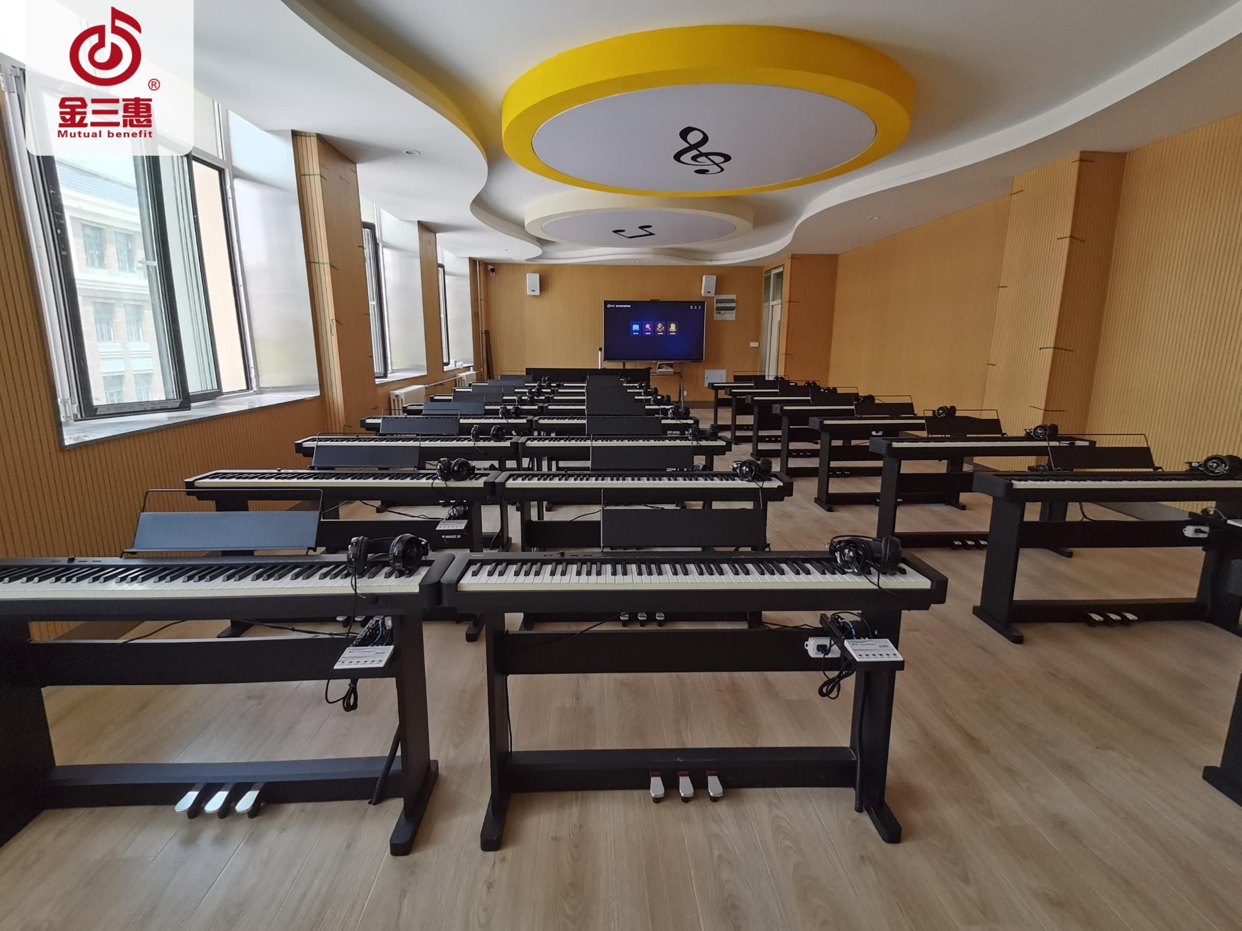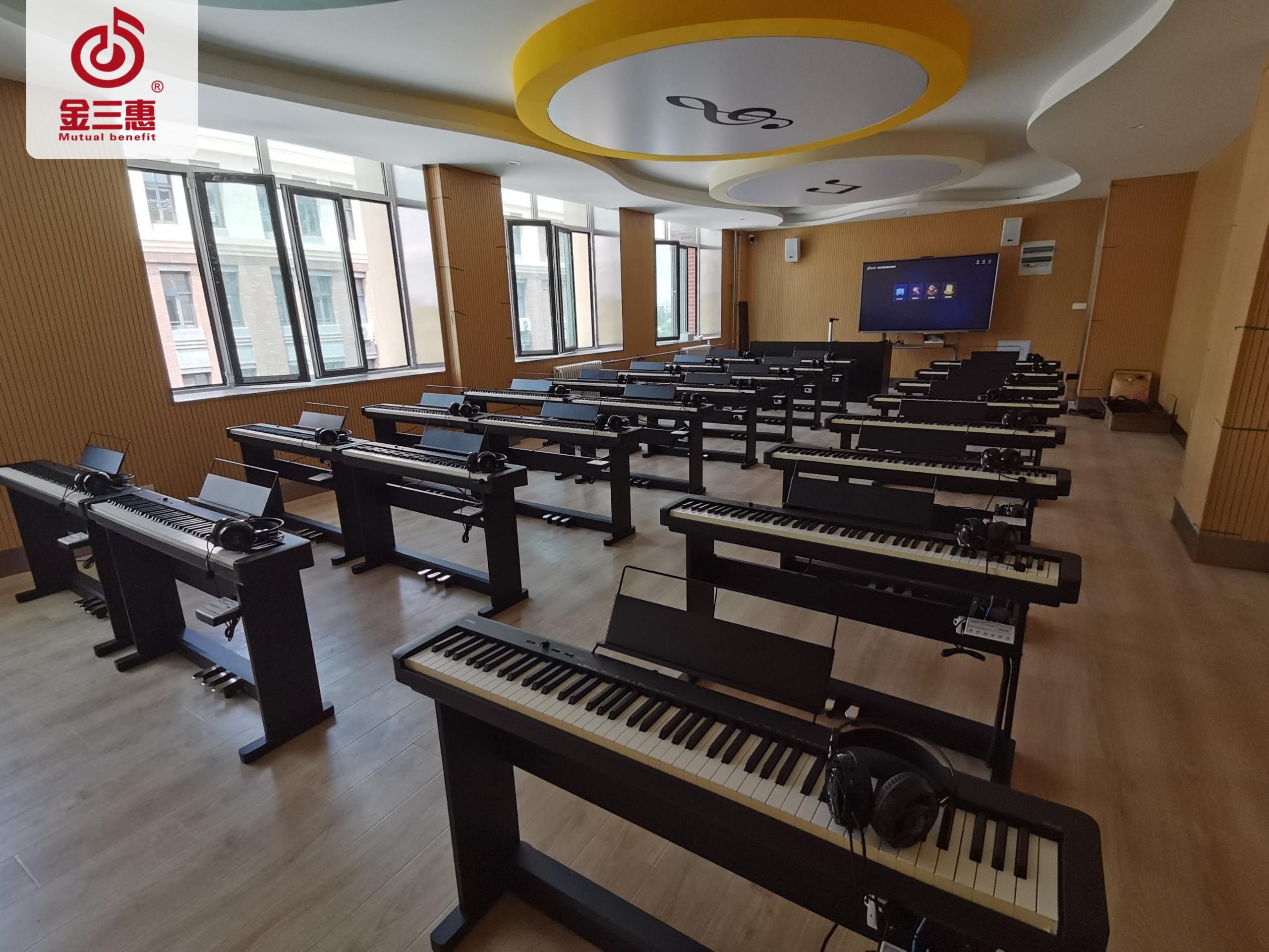 金三惠數(shù)字電鋼琴教室,功能豐富、穩(wěn)定實用、兼容性強�?梢哉w裝配,亦可單獨定制。全面滿足用戶各種需求。是鋼琴教學與實訓的專業(yè)教室。支持教師、學生規(guī)律的、科學的、恒久的訓練。
