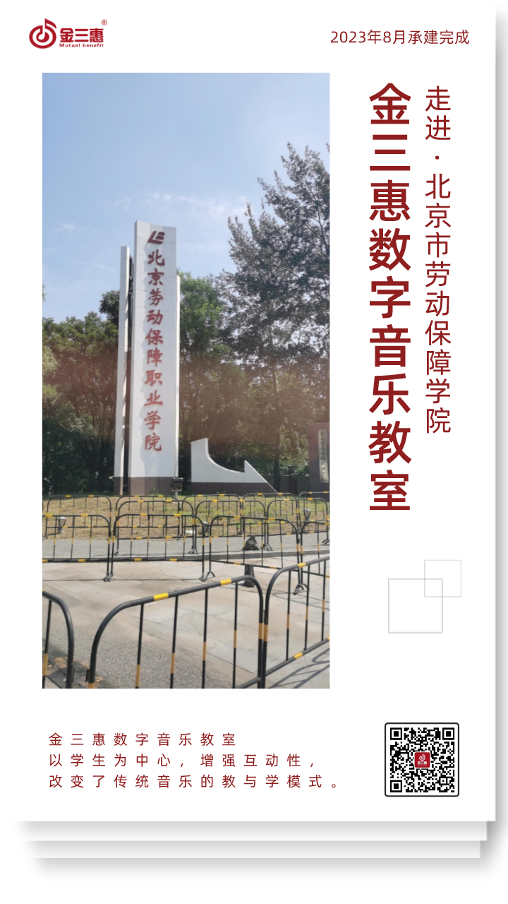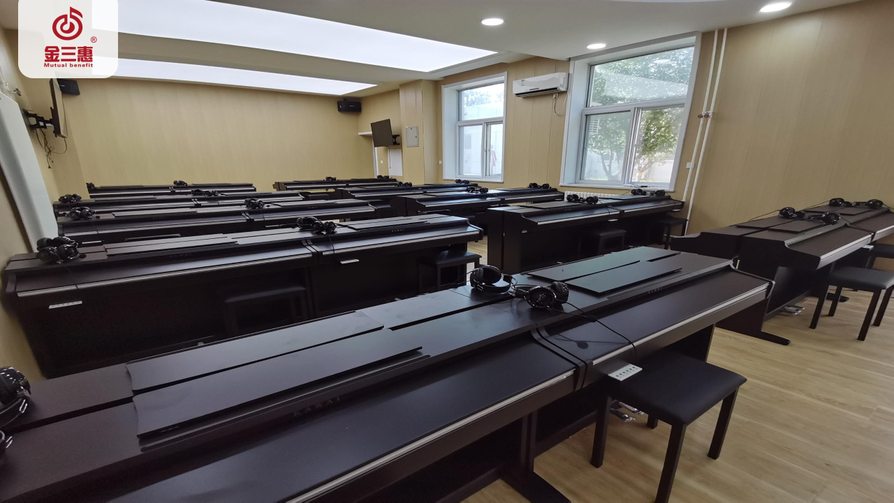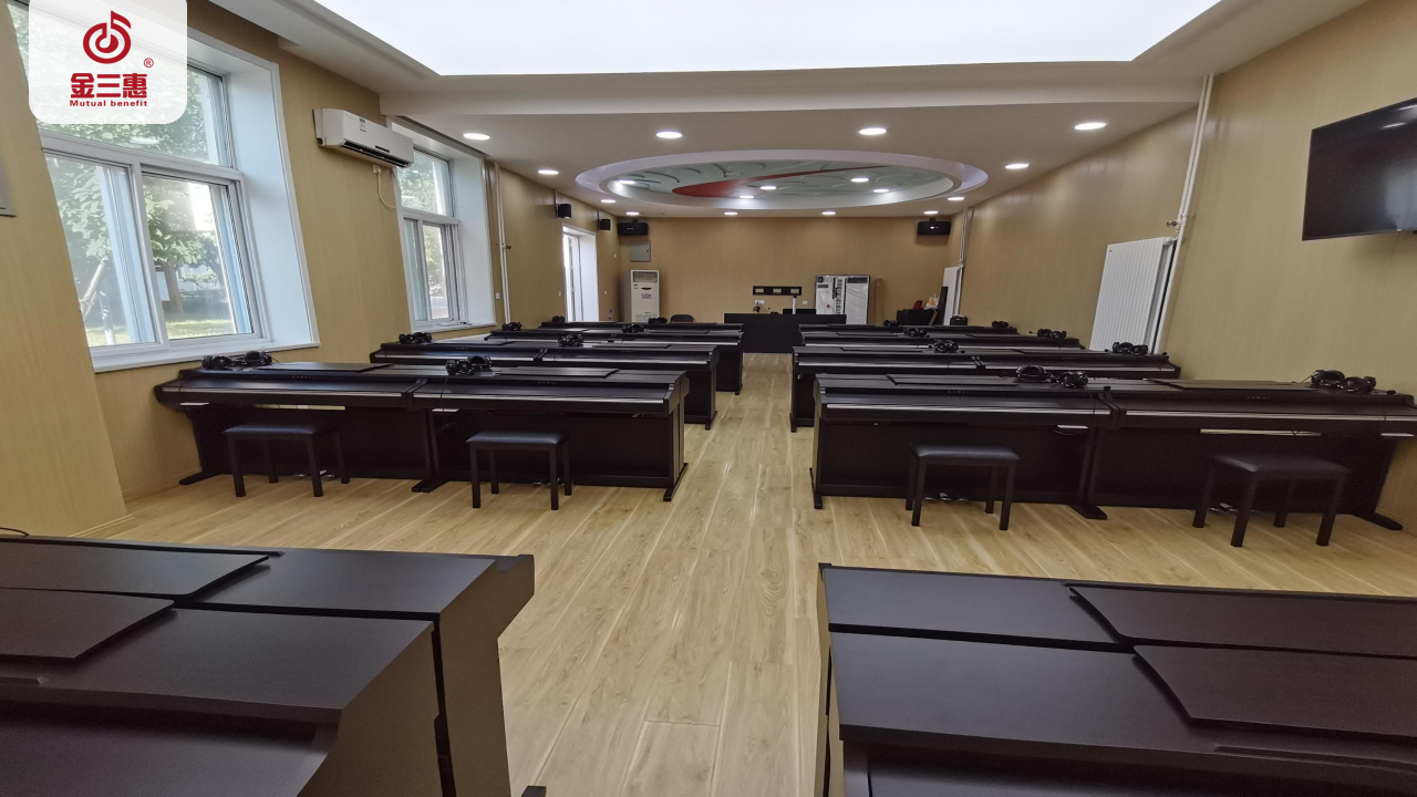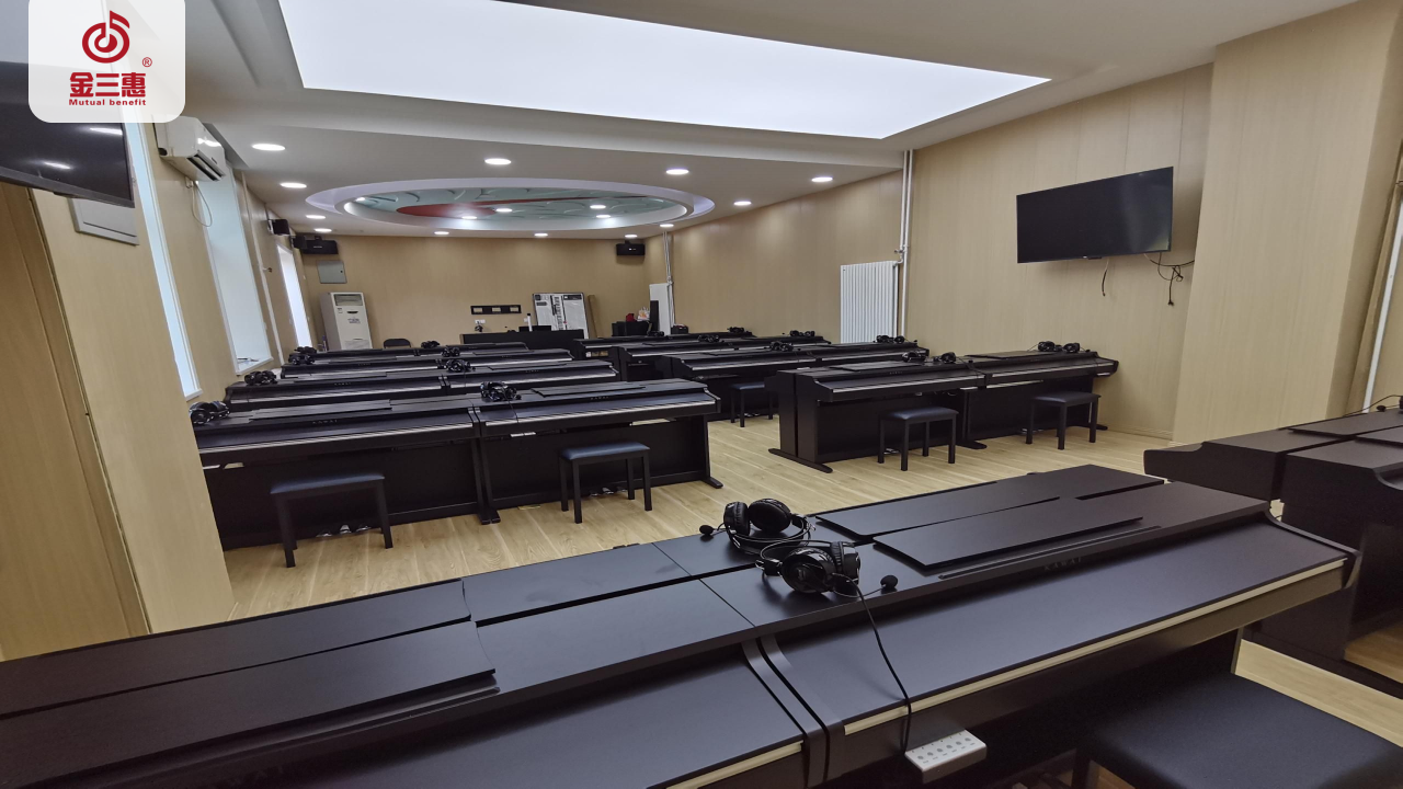 2023年8月,金三惠數字音樂教室走進北京勞動保障職業學院,為學生提供了40+1的電鋼琴教室,配備了金三惠電鋼琴教學系統、電鋼琴、數字音樂教學儀等教學教具等。電鋼琴室-金三惠 (jinsanhui.com)
