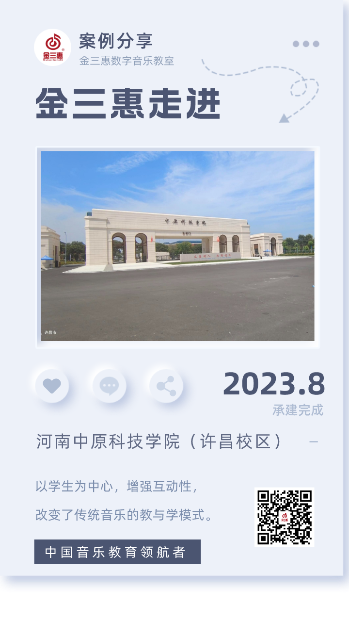 2023年8月,金三惠數(shù)字音樂教室走進河南中原科技學院(許昌校區(qū)),為學生提供了40+1的電鋼琴教室2套 & 80+1電鋼琴教室2套,配備了金三惠電鋼琴教學系統(tǒng)、電鋼琴、數(shù)字音樂教學儀等教學教具等。
