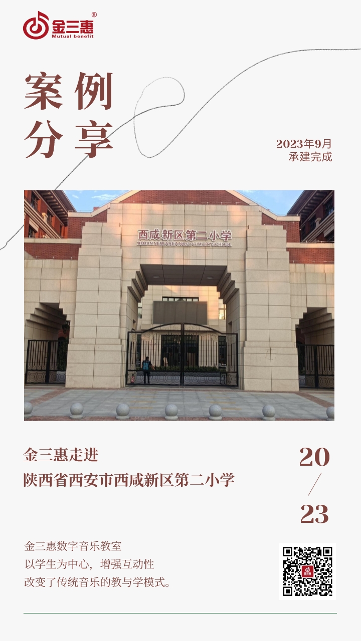 2023年9月,金三惠數字音樂教室走進陜西省西安市西咸新區第二小學,為學生提供了48+1的電鋼琴教室配備了金三惠電鋼琴教學系統、電鋼琴、數字音樂教學儀等教學教具等。電鋼琴室-金三惠 (jinsanhui.com)