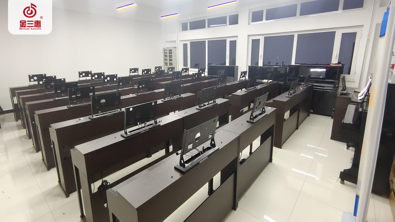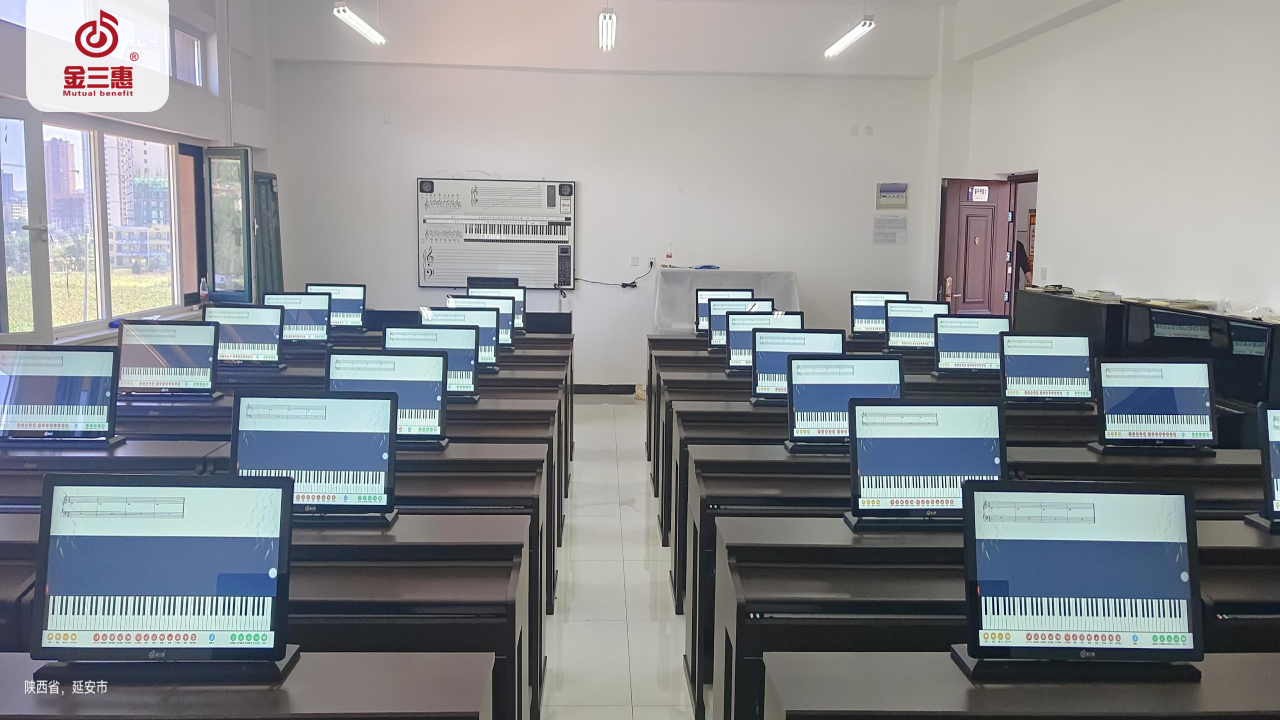 2023年9月,金三惠數字音樂教室為陜西省延安市子長市中學高中部提供、安裝、培訓的32+1智慧創客音樂教室(2套)正式開始使用!配備了金三惠教學系統、電鋼琴、數字音樂教學儀等教學教具。