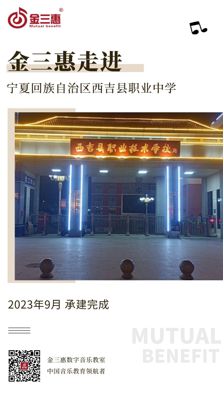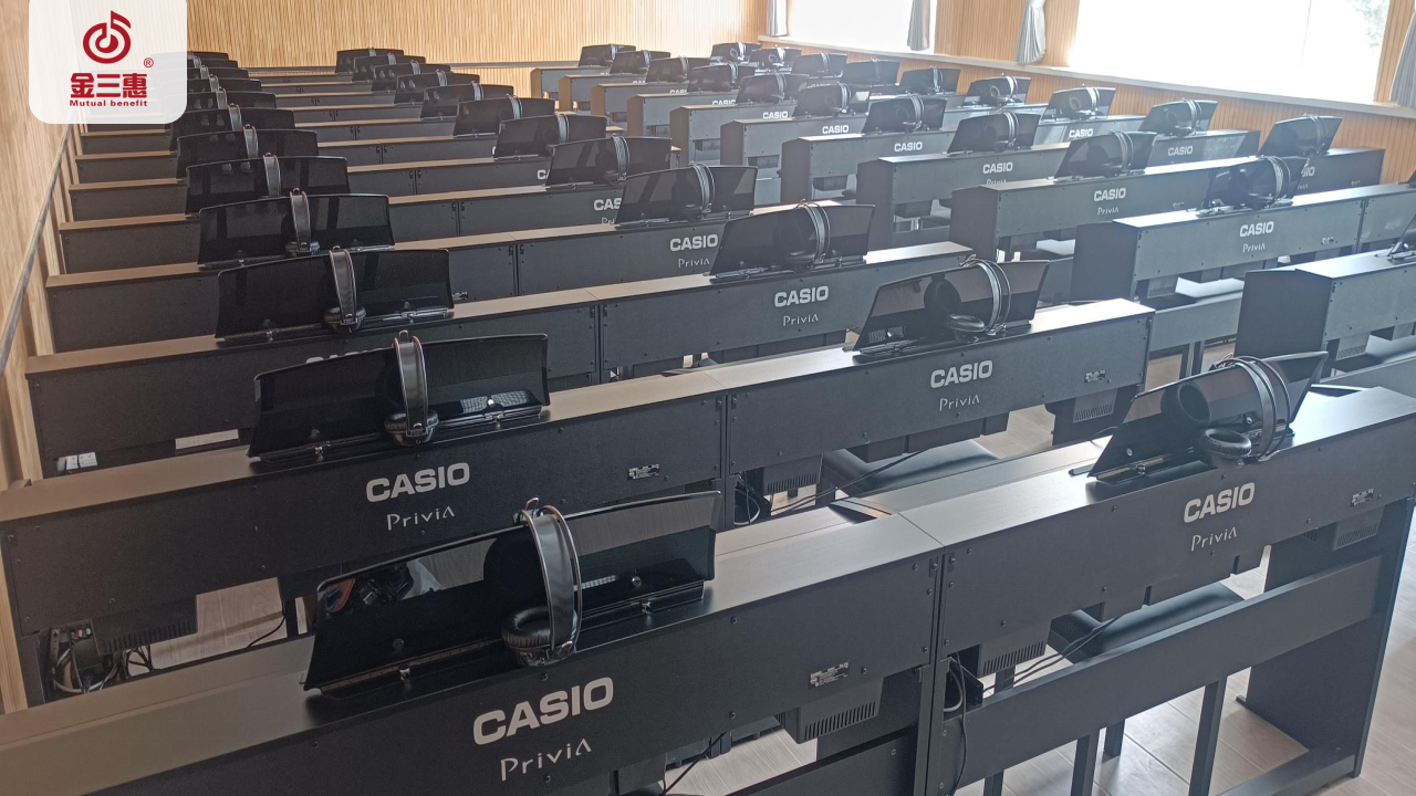 2023年9月,金三惠數字音樂教室走進寧夏回族自治區西吉縣職業中學,為學生提供了48+1的電鋼琴教室,配備了金三惠電鋼琴教學系統、電鋼琴、數字音樂教學儀等教學教具等。電鋼琴室-金三惠 (jinsanhui.com)