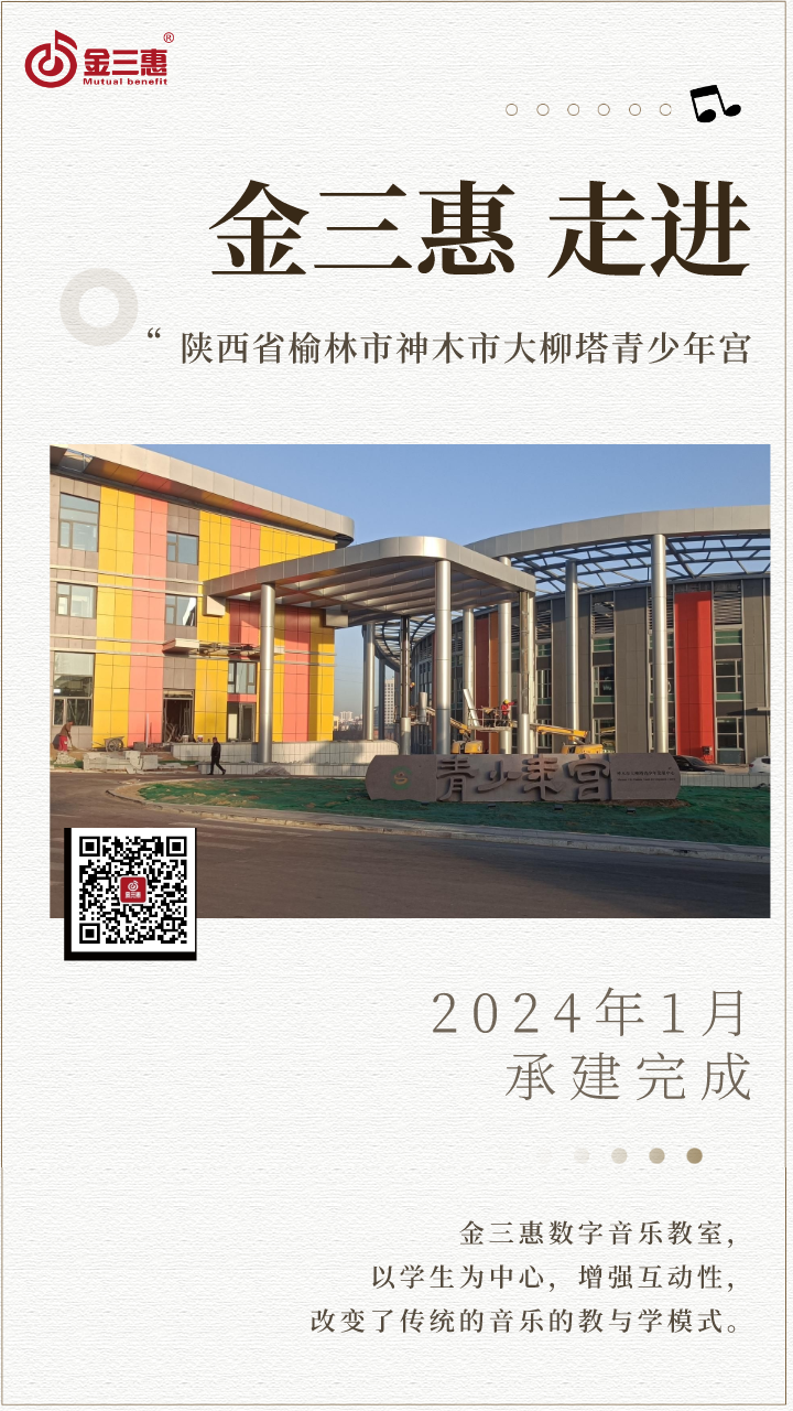 2024年1月,金三惠數字音樂教室為陜西省榆林市神木市大柳塔青少年宮提供、安裝、培訓的10+1智慧創客音樂教室正式開始使用!配備了金三惠教學系統、電鋼琴、數字音樂教學儀等教學教具。創客教室-金三惠 (jinsanhui.com)