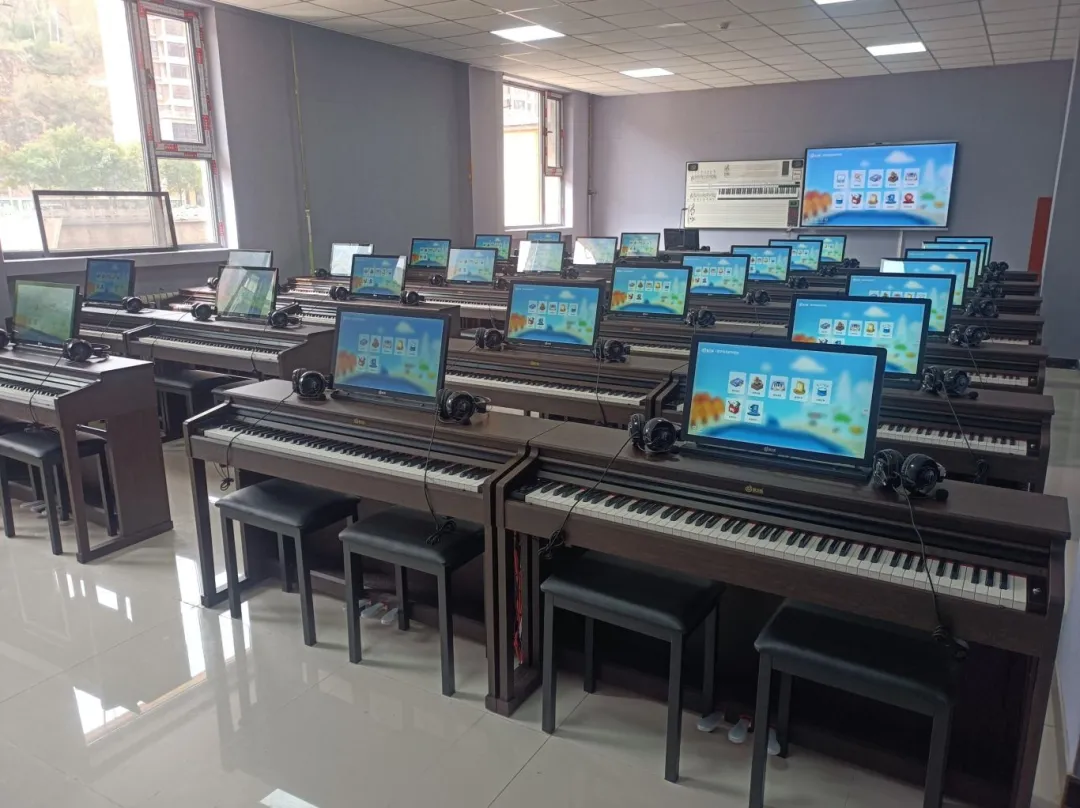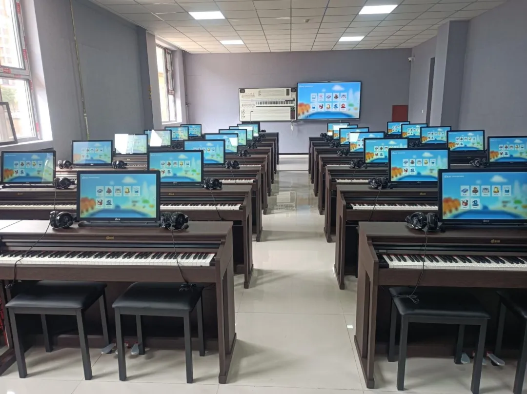 2024年10月,金三惠數字音樂教室為延安市吳起縣紅軍小學提供、安裝、培訓的28+1智慧音樂素養教室正式開始使用!配備了金三惠教學系統、電鋼琴、數字音樂教學儀等教學教具。