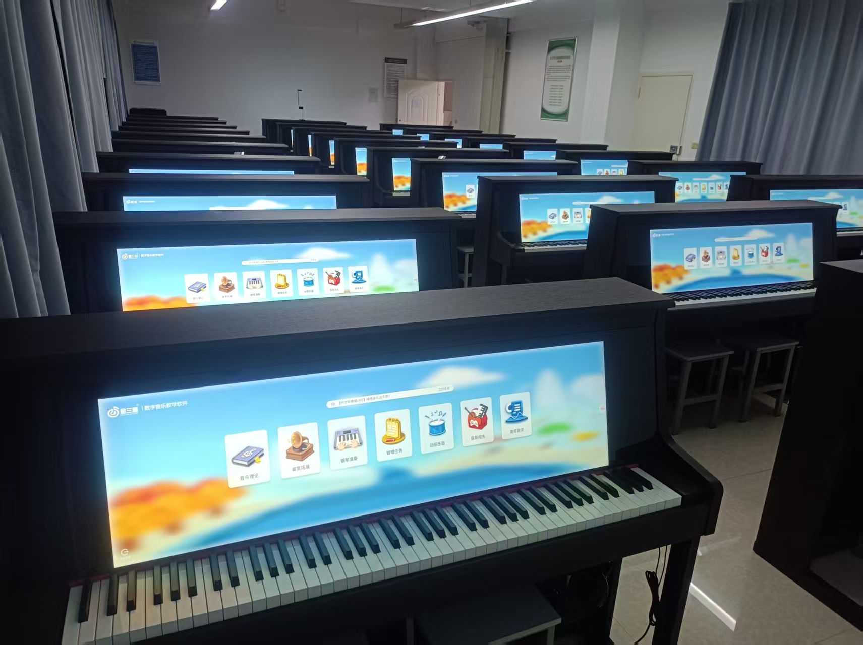 2025年9月,金三惠智慧音樂素養教室走進云南民族大學應用技術學院,為其提供了30+1的智慧音樂素養教室,配備了金三惠數字音樂教學系統、電鋼琴、數字音樂教學儀等。
