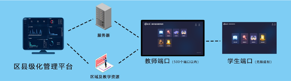 數(shù)字化音樂(lè)教學(xué)平臺(tái)是通過(guò)區(qū)/縣的服務(wù)器,建設(shè)區(qū)級(jí)/縣/校級(jí)教學(xué)平臺(tái),結(jié)合配套教學(xué)內(nèi)容,輔助區(qū)/縣或?qū)W校開(kāi)好、開(kāi)齊音樂(lè)課,讓孩子享受優(yōu)質(zhì)的教學(xué)資源,更好的提升孩子音樂(lè)知識(shí)水平,推進(jìn)區(qū)/縣或?qū)W校的美育素養(yǎng)發(fā)展。