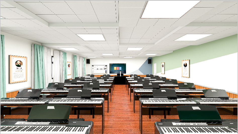 國(guó)標(biāo)數(shù)字音樂(lè)教室著重突出“以興趣培養(yǎng)為主,拓展豐富學(xué)生體驗(yàn)”為要素,是多元化,數(shù)字化、智能化的綜合性音樂(lè)教室。可應(yīng)用于聲樂(lè)教學(xué)、樂(lè)器教學(xué)、音樂(lè)興趣小組的開(kāi)展。