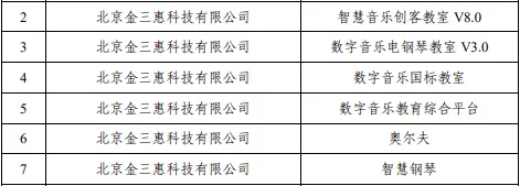 金三惠自主研發的智慧鋼琴、奧爾夫打擊樂器、智慧音樂創客教室V8.0、數字音樂電鋼琴教室V3.0、數字音樂國標教室、數字音樂教育綜合平臺6款音樂教育裝備產品,在眾多參評產品中脫穎而出,成功入圍了廣西教育裝備展示會優秀產品目錄!