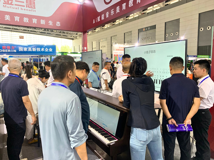 在《義務教育藝術課程標準(2022年版)》和教育部《關于加強中小學人工智能教育的通知》(2024)的政策指引下,金三惠在本次展會呈現了AI音樂課堂、智能電鋼琴教室等一系列創新產品,全面滿足當前教學需求。
