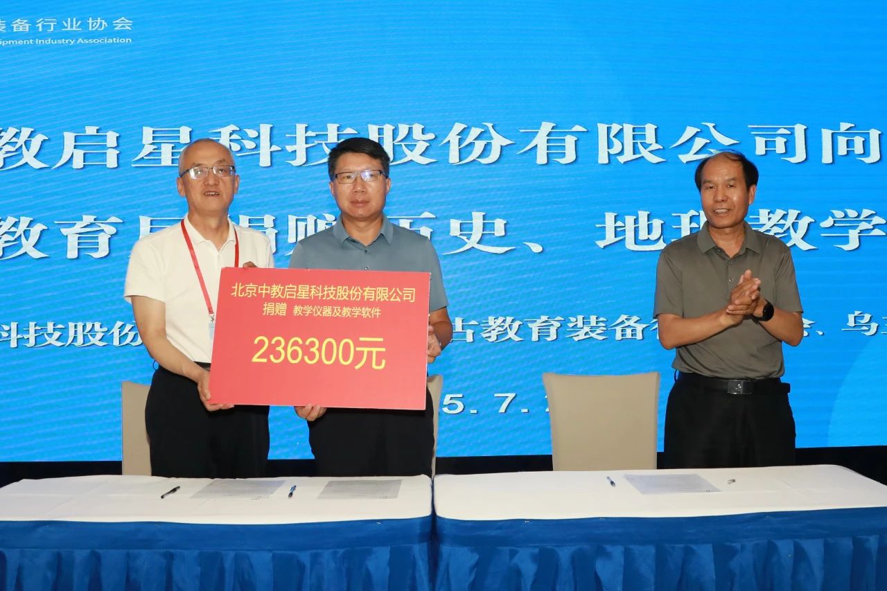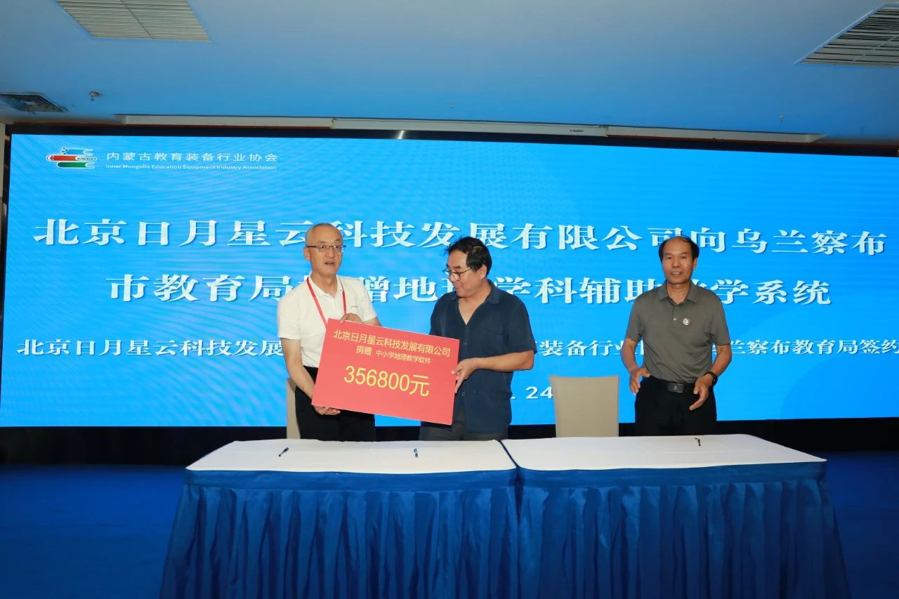 在全場(chǎng)嘉賓的見(jiàn)證下,相關(guān)代表鄭重簽署捐贈(zèng)協(xié)議,定格京蒙攜手助力教育發(fā)展的重要瞬間。北京教育裝備行業(yè)協(xié)會(huì)和會(huì)員企業(yè)共計(jì)捐贈(zèng)103.41萬(wàn)元,其中北京教育裝備行業(yè)協(xié)會(huì)捐款 20 萬(wàn)元,北京金三惠科技有限公司捐贈(zèng)音樂(lè)教學(xué)設(shè)備一批24.1萬(wàn)元,北京中教啟星科技股份有限公司捐贈(zèng)教學(xué)儀器及教學(xué)軟件一批23.63萬(wàn)元,北京日月星云科技發(fā)展有限公司捐贈(zèng)中小學(xué)地理教學(xué)軟件一批35.68萬(wàn)元。