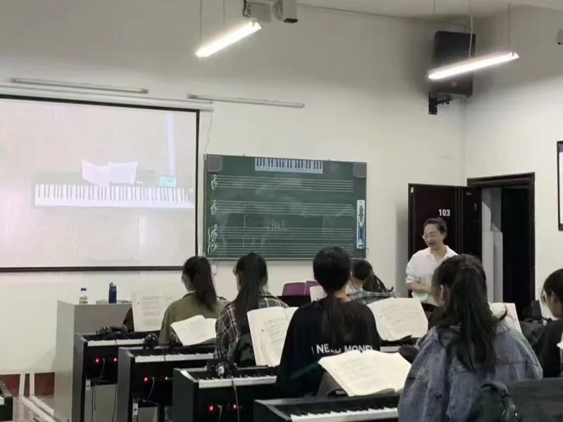 所以我先從思想上進行一個轉變,把20多位同學當成一個人,以理論教學為主,教授學生了解鋼琴的結構、鍵盤及音色的區分,傳授他們正確的鋼琴演奏方法、簡單的鋼琴演奏技巧,以及基本功。