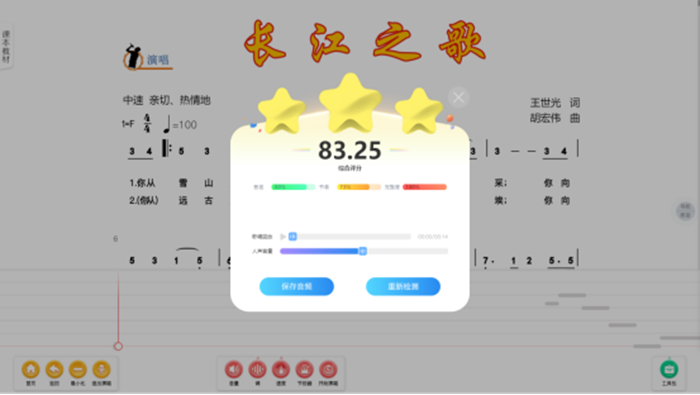 音樂(lè)課上學(xué)生們?cè)僖膊慌乱魷?zhǔn)和節(jié)奏問(wèn)題的困擾,學(xué)生們只需要對(duì)著軟件演唱、演奏,AI就能通過(guò)聲音識(shí)別技術(shù),精準(zhǔn)分析音準(zhǔn)、節(jié)奏完成度,還能指出需要改進(jìn)的地方。