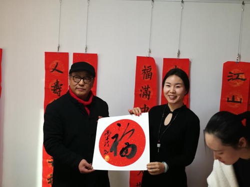 得到書法名家送的“�!弊趾�,大家紛紛說道:“如今手寫春聯越來越少了,商店里掛著的都是清一色的印刷體春聯,缺少了傳統的墨香,傳統年味也難尋了。沒想到,能親眼看到這么著名的書法家給大家寫春聯,我感覺太開心了,這樣的機會太難得了�!�