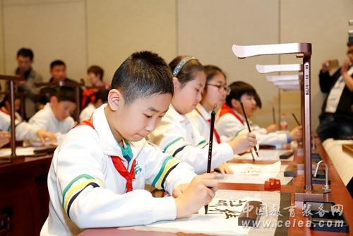 2018年4月16日,由中國教育學(xué)會(huì)主辦、北京華文眾合科技有限公司組織的全國書法教育研討觀摩會(huì)在國家會(huì)議中心隆重舉行,會(huì)議的召開可謂解決兩會(huì)期間備受關(guān)注的“書法進(jìn)課堂”問題的“及時(shí)雨”。中國教育學(xué)會(huì)常務(wù)副會(huì)長楊念魯出席會(huì)議,教育界、書法界的專家匯聚一堂針對“書法進(jìn)課堂”的核心問題進(jìn)行了研討,北京天壇東里小學(xué)的老師和同學(xué)們現(xiàn)場展示了一堂數(shù)字書法課堂,獲得了眾多參會(huì)人員的熱烈反響以及與會(huì)專家的一致好評。