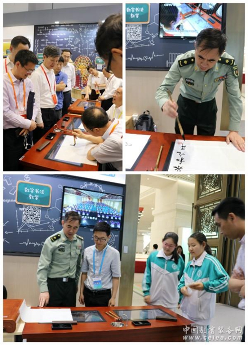 軍人,學生,小朋友等各種年齡各種職業的體驗者絡繹不絕,把展位圍得水泄不通,爭相揮毫潑墨,都想先體驗一把數字書法的魅力,寫一張自己滿意的作品。