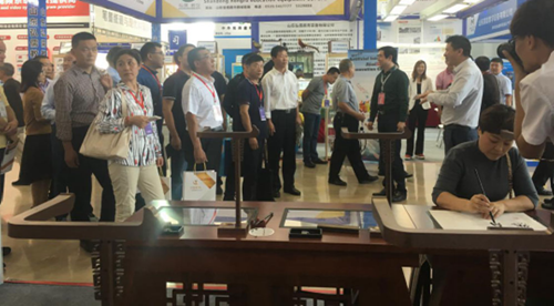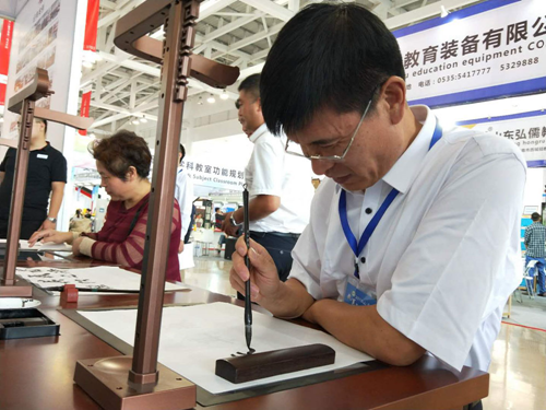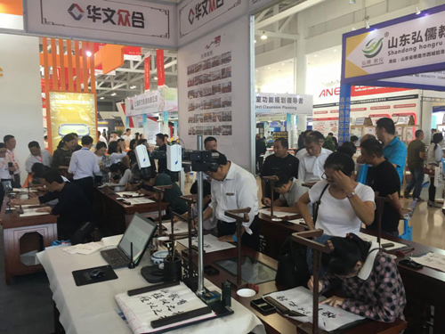 2018年9月28日至30日,由山東省教育廳、臨沂市政府主辦的“2018山東省教育裝備博覽會(huì)”在臨沂國(guó)際博覽中心舉行。國(guó)內(nèi)首家書(shū)法教育云平臺(tái)、國(guó)家高新技術(shù)企業(yè)——北京華文眾合科技有限公司攜最新一代智慧書(shū)法教室整體解決方案隆重亮相,本屆展會(huì)華文眾合推出的“多模教學(xué)”成為展會(huì)的一大熱點(diǎn),展會(huì)現(xiàn)場(chǎng)前來(lái)體驗(yàn)的觀眾絡(luò)繹不絕,紛紛表示出極大的興趣。