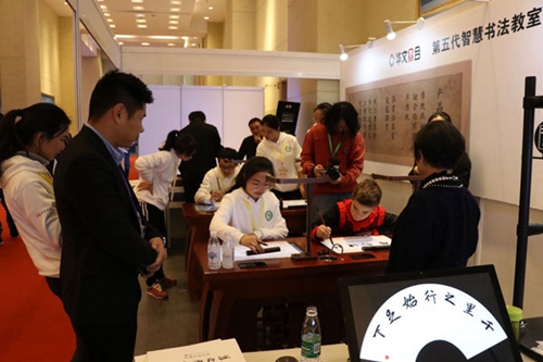 昨天,第十三屆全球孔子學院大會在成都開幕,來自150多個國家和地區的大學校長、孔子學院代表近1500人參加大會。華文眾合攜自主研發的第五代智慧書法教室亮相孔子學院大會,融合AI技術、智能硬件、物聯網等先進技術的新產品吸引眾多參會者體驗、了解,共話漢語海外教學和文化交流。
