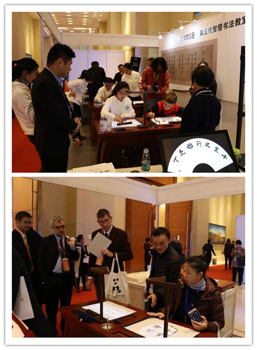 日前,第十三屆全球孔子學院大會在成都勝利結束。大會召開期間,來自150多個國家和地區的大學校長、孔子學院代表近1500人參加大會。北京華文眾合科技有限公司攜新一代智慧書法教室亮相展會,吸引了眾多參會者駐足體驗。四川衛視科教頻道等多家媒體對華文眾合進行了采訪報道。